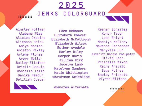Congratulations to the following students who have made the 2025-2026 Jenks Varsity Winterguard! Our first practice is Monday, October 13th from 6-9 PM at the high school TAC Gym! Please scan the QR code to join our JV Band App page for further communications throughout the season!