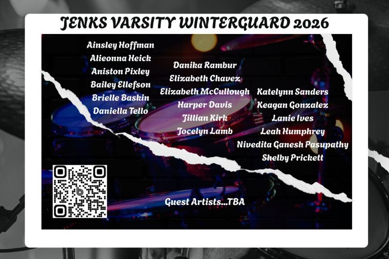 Congratulations to the following students who have made the 2025-2026 Jenks Junior Varsity Winterguard! Our first practice is Monday, October 13th from 6-9 PM at the high school TAC Gym! Please scan the QR code to join our JV Band App page for further communications throughout the season!